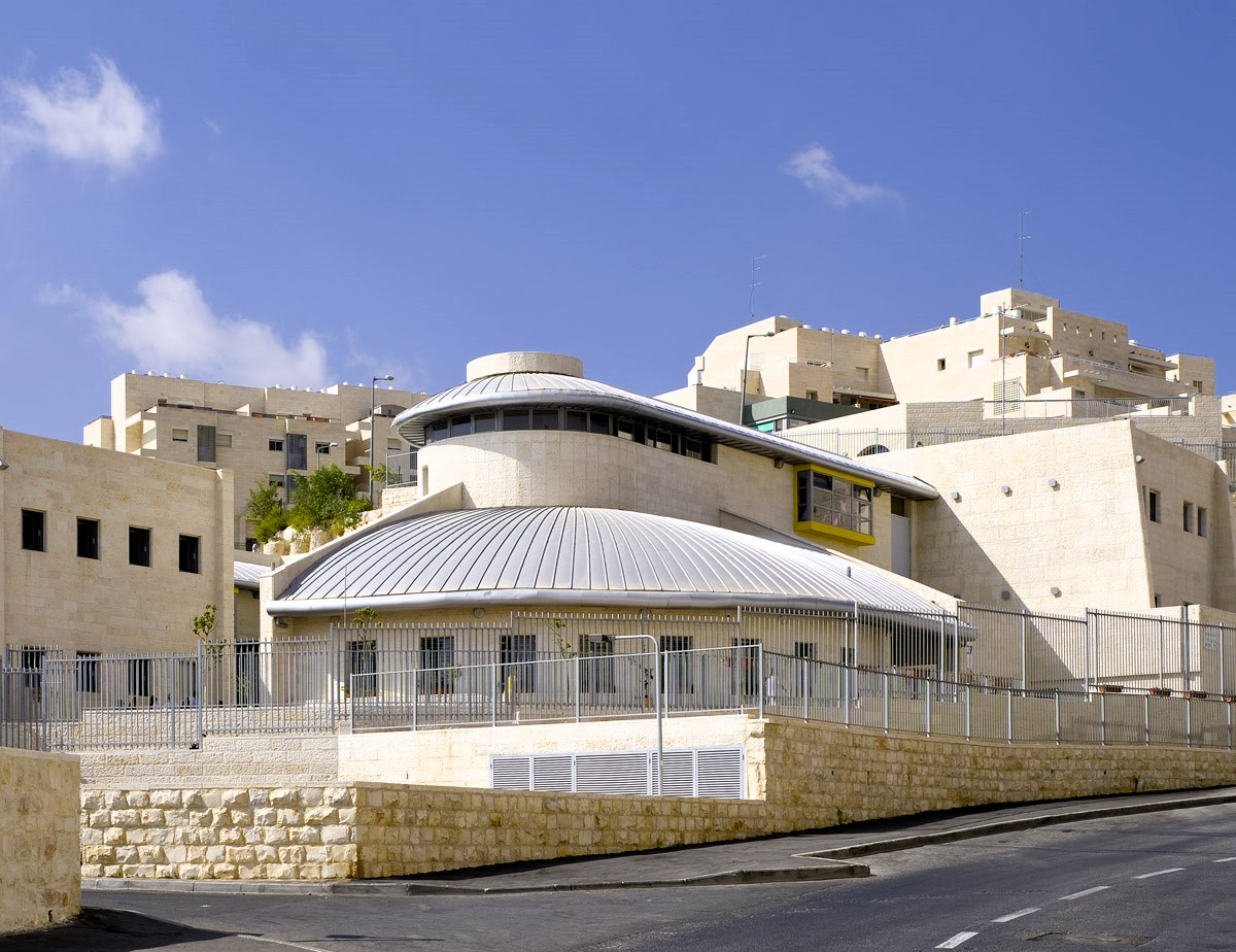 The building separates access for the school and kindergartens, which are aligned along a diagonal street and inspired by the children’s story A Tale of Five Balloons, with each classroom defined by a distinct color. The project, initiated by the city’s Department of Planning and Public Buildings and funded by Mifal HaPais, integrates sustainable construction principles that reduce life-cycle costs by 40%, while creating a functional, engaging environment for both students and staff.