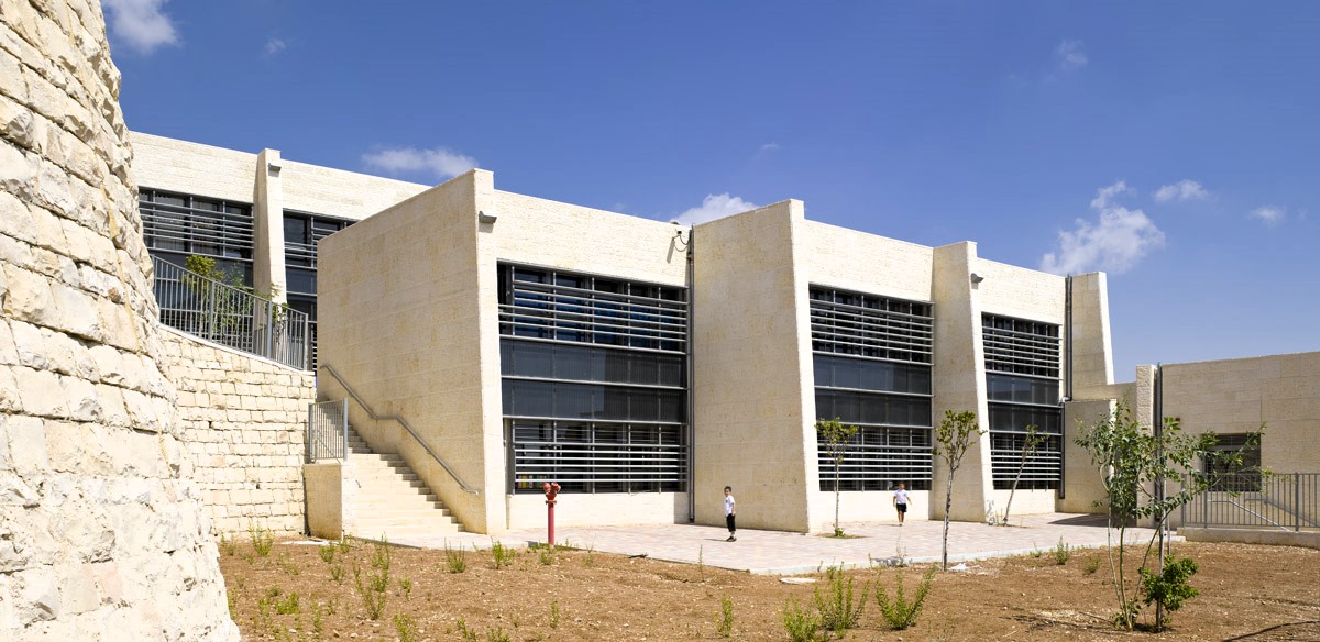 Built in 2010 by architects Ruth Lahav and Tony Rigg for the Jerusalem Municipality, the Ilan Ramon School and Kindergartens in Har Homa sit on a steep, east-facing slope with a 22-meter elevation difference across the site.