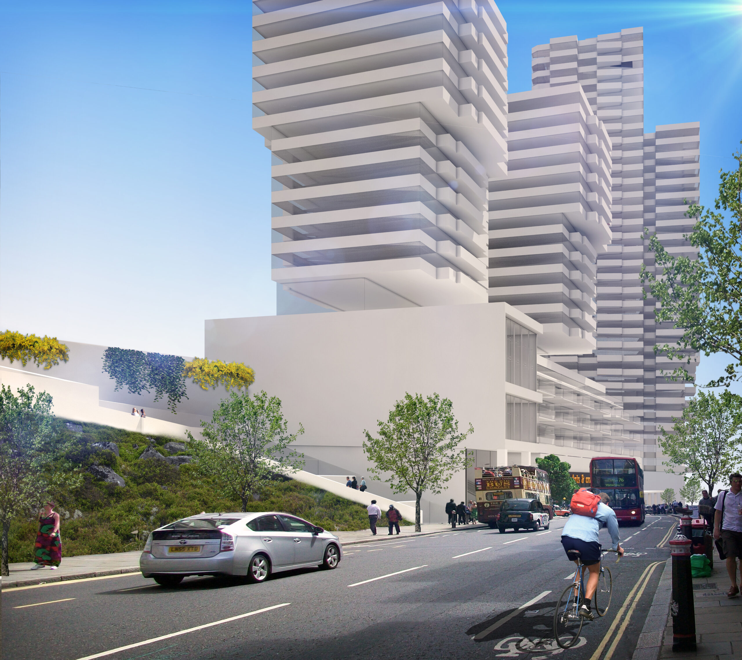 PELE “Park View” in Jerusalem, is an urban renewal project designed to replace deteriorating 1950s housing with a dense, mixed-use development that meets both social and spatial challenges. Covering 12.65 dunams on a steep 33% slope between Nurit and Costa Rica streets, the plan introduces two 22–25-story residential towers, a 12-story residential building, and a four-level commercial center that connects the streets via elevators, escalators, and stairs.